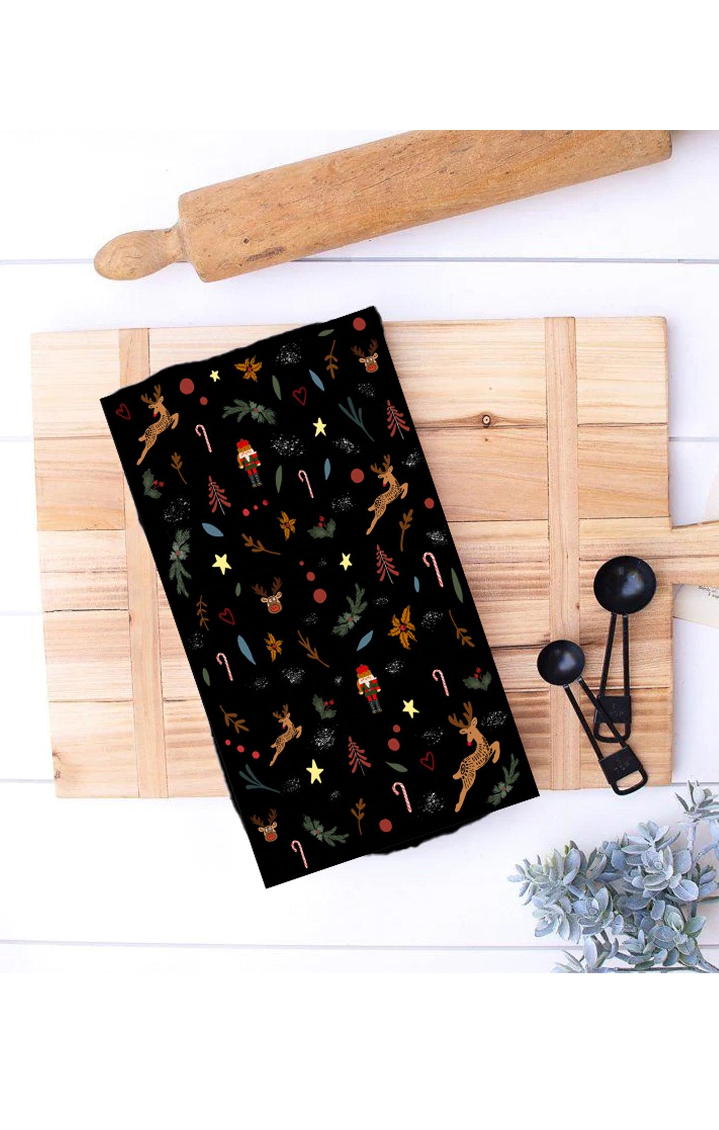 Yuletide Reindeer & Greenery Tea Towel